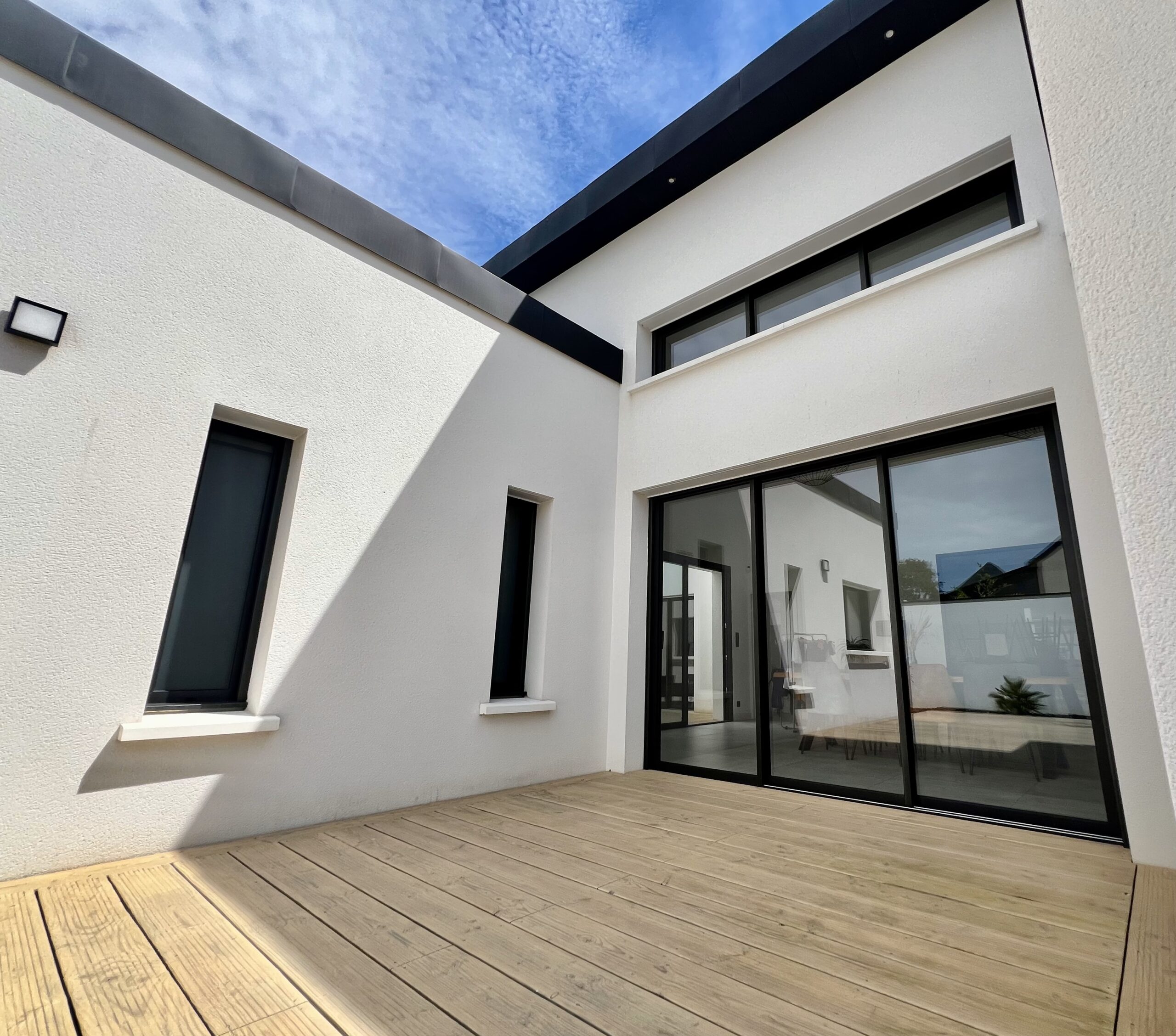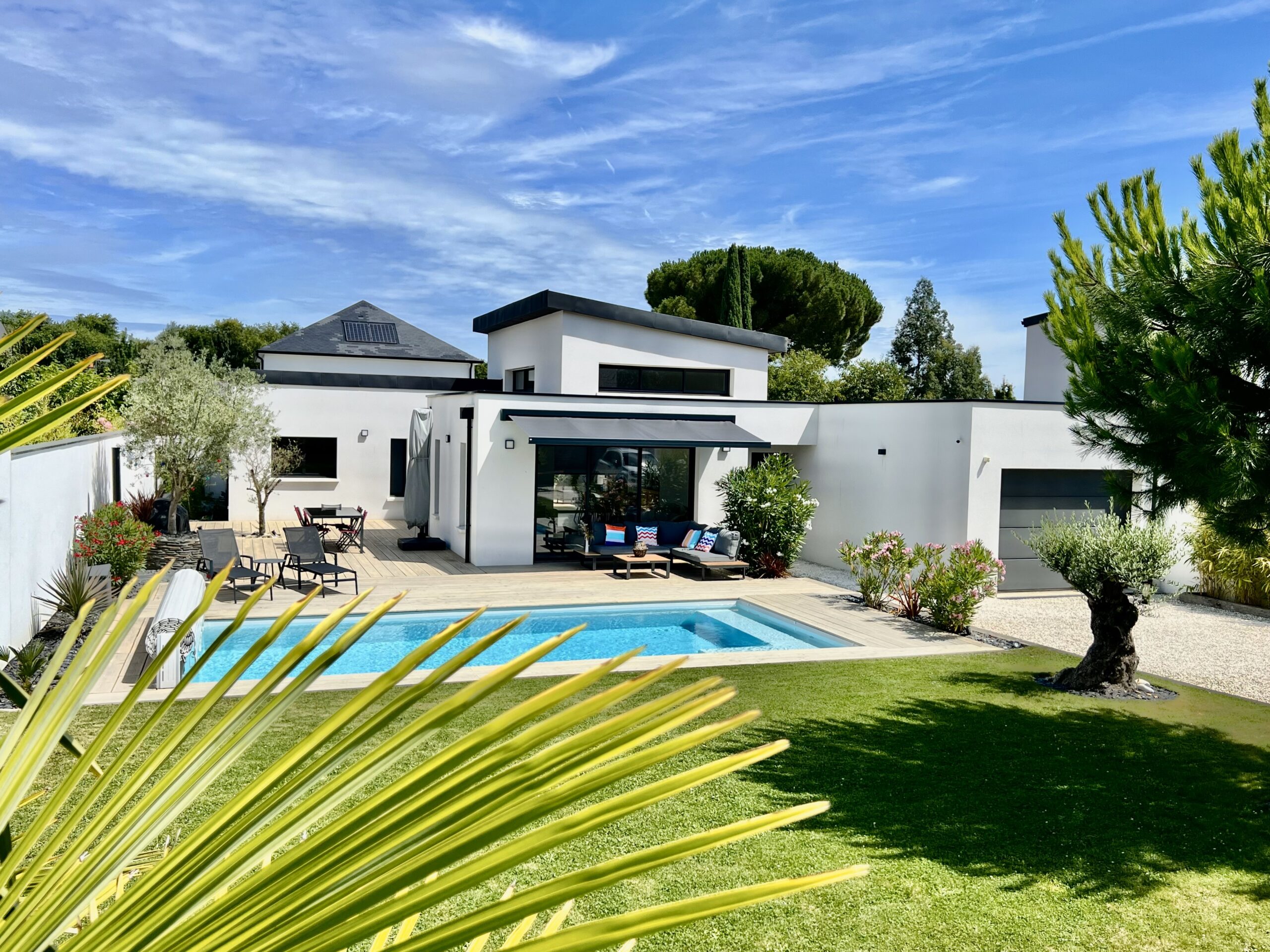 Nous sommes fiers de vous présenter notre dernière réalisation : une villa de luxe moderne et de plain-pied, située dans la région d’Angers. Ce projet d’exception a été pensé pour allier discrétion, élégance et confort. Le résultat est une habitation spacieuse, aux volumes généreux et aux finitions haut de gamme, conçue pour un mode de vie luxueux, en parfaite harmonie avec son environnement.